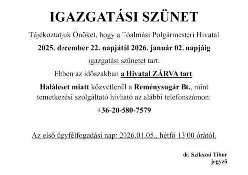 M e g h í v ó Tóalmás Község Önkormányzat Képviselő-testülete 2026. március 9-én …